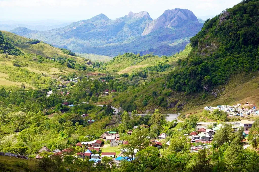 7.30am Enjoy the mountain scenery of Aileu and Ainaro on the 4 hour drive to Turiscai. Stop to explore the remains of the Portuguese colonial Pousada, before heading further east to eat lunch and start hiking. Walk down to a tributary of the North Laclo River, the longest river in the country. From here head up to Tetuluai and across to Fatumaquerec, passing a site where Timor-Leste independence leadership hid from Indonesian troops during the occupation.