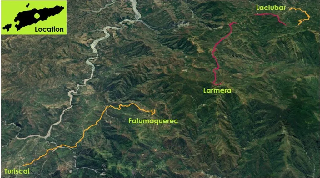 This moderate to hard 3 day hike involves ~1,200m of ascent and ~2,000m of descent as you walk between Turiskai in Manufahi and Laclubar in Manatuto through remote and spectacular parts of Timor-Leste.