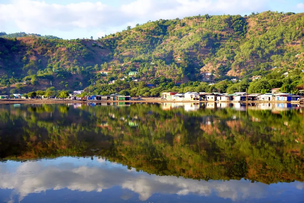 One of the most scenic parts of Dili. Tasi means sea and tolu means three, referring to the three lakes in the area, though during the wet season the two largest merge, and during the dry season they can largely disappear. It is a nationally Important Bird Area where 71 different species have been spotted, including water birds who migrate annually from Russia. It was a protected nature reserve but many people who moved from the districts have established homes around the perimeter of the lakes. In September 2024 Pope Francis celebrated mass for an estimated 700,000 people at Tasi Tolu, from a purpose-built platform. Microlet local bus #10.